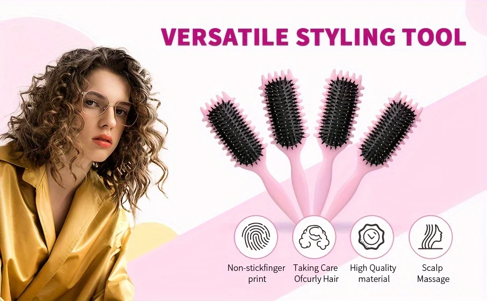 1Pc CANDY BRUSH Curly Hair Styling Brush-Detangling with Prongs, Reduces Pulling Separation Nylon Bristles for All Curl Types